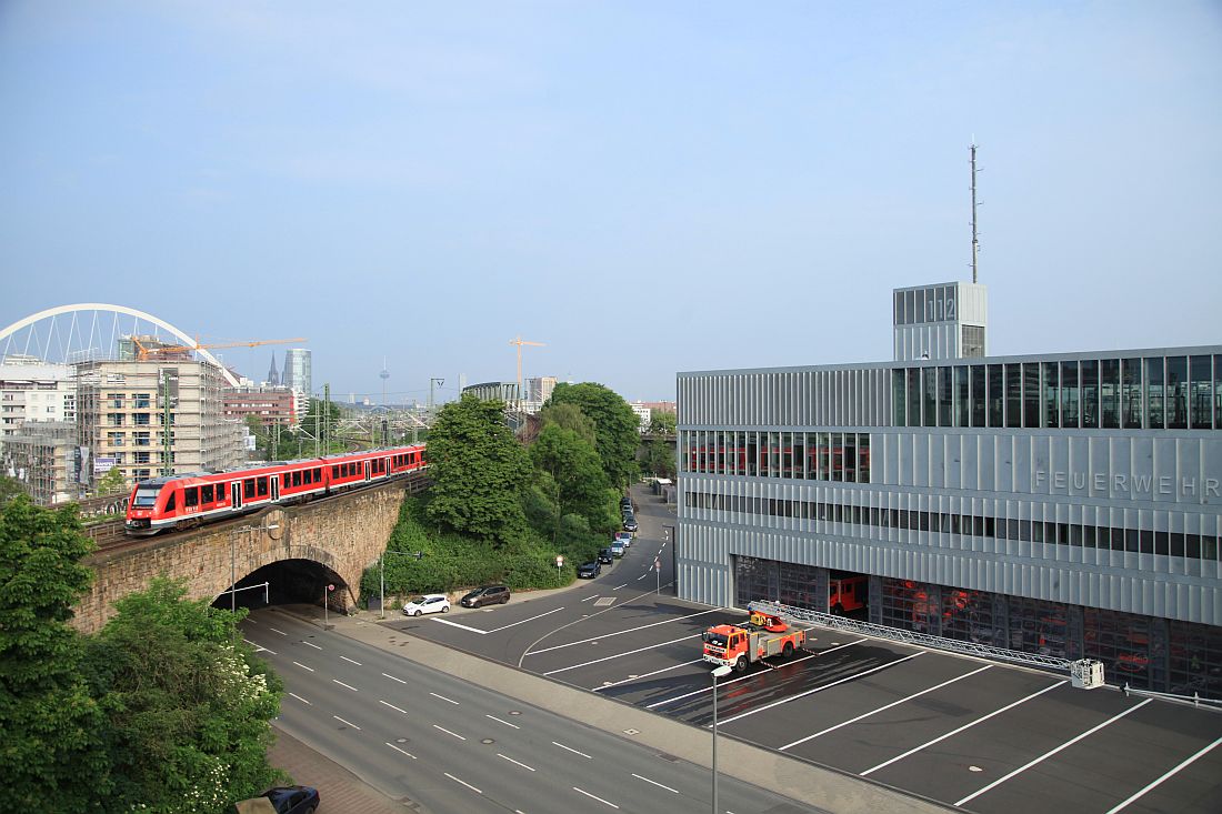 Der Tag beginnt mit einer Leistungsschau der Berufsfeuerwehr Köln. Die hat ihre Wache unmittelbar gegenüber unseres Zimmerfensters.