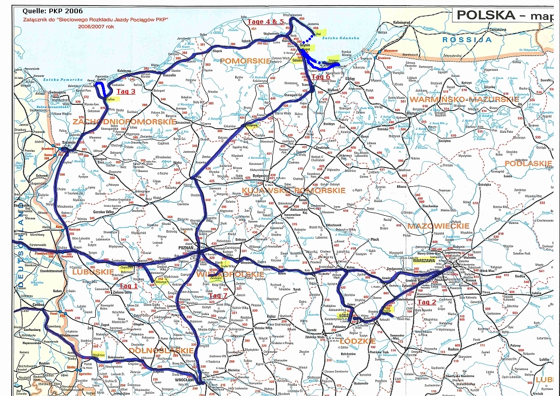 Sodann besteige ich den Nachtzug "Uznam" in den nordwestlichsten Zipfel Polens,