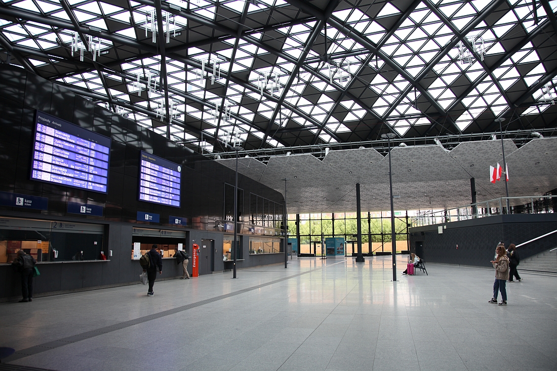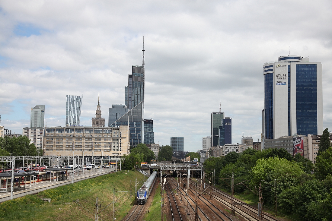 Die Endstation des Zuges ist der wiederauferstandene Warschauer "Hauptbahnhof", den wir links im Bild sehen.