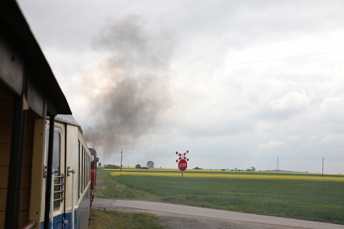 Dann geht es los durch das polnische Nichts zwischen Neiße und Bug. Die Landschaft ist ungefähr so aufregend wie die Bedienungsanleitung für einen Handstaubsauger. Dennoch strahlt die Bahn, wie sie sich schaukelnd und mächtig rußend ihren Weg durch die Felder bahnt, eine wunderbare Ursprünglichkeit aus.