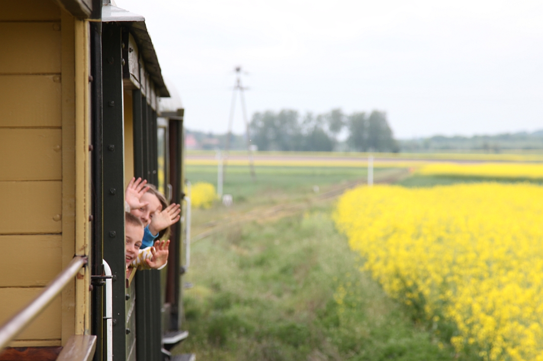 Für die Kinder wird nun das gemacht, was bei Ausflugsfahrten auf polnischen Schmalspurbahnen gerne angeboten wird: