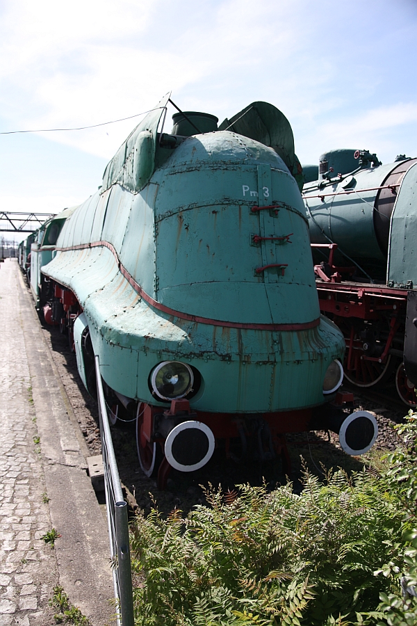 Unmittelbar parallel an den ominösen Hauptbahnhof schließt sich das nationale Eisenbahnmuseum an. Das hat man in den vergangenen Jahren ein wenig auf Vordermann gebracht. Neben den Ausstellungsräumen findet man auf dem Freigelände interessante Exponate, so zum Beispiel eine stromlinienverkleidete 03 aus Zeiten der Deutschen Vorkriegs-Reichsbahn (hinten die Brücke, von der die vorangegangenen Fotos entstanden)...
