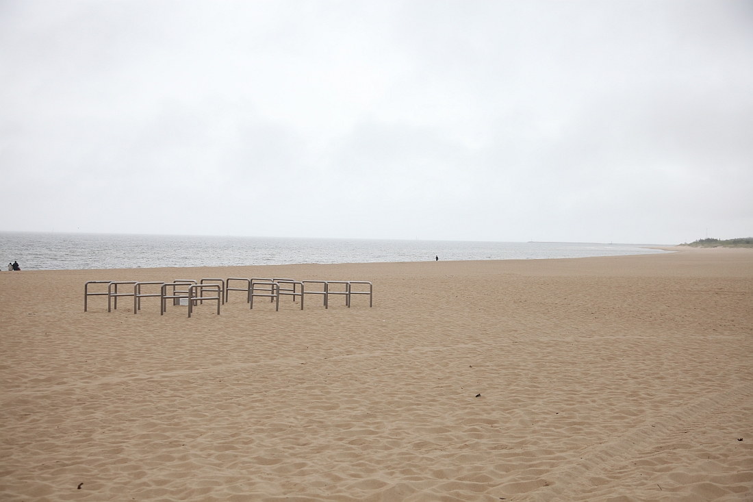 Die Polen stellen ihre Fahrradbügel mitten auf den Strand, auf dass der Sand auch richtig schön in das Tretlager eindringe! Hach, da ist es wieder, das Land der begrenzten Unmöglichkeiten, das ich so liebe!