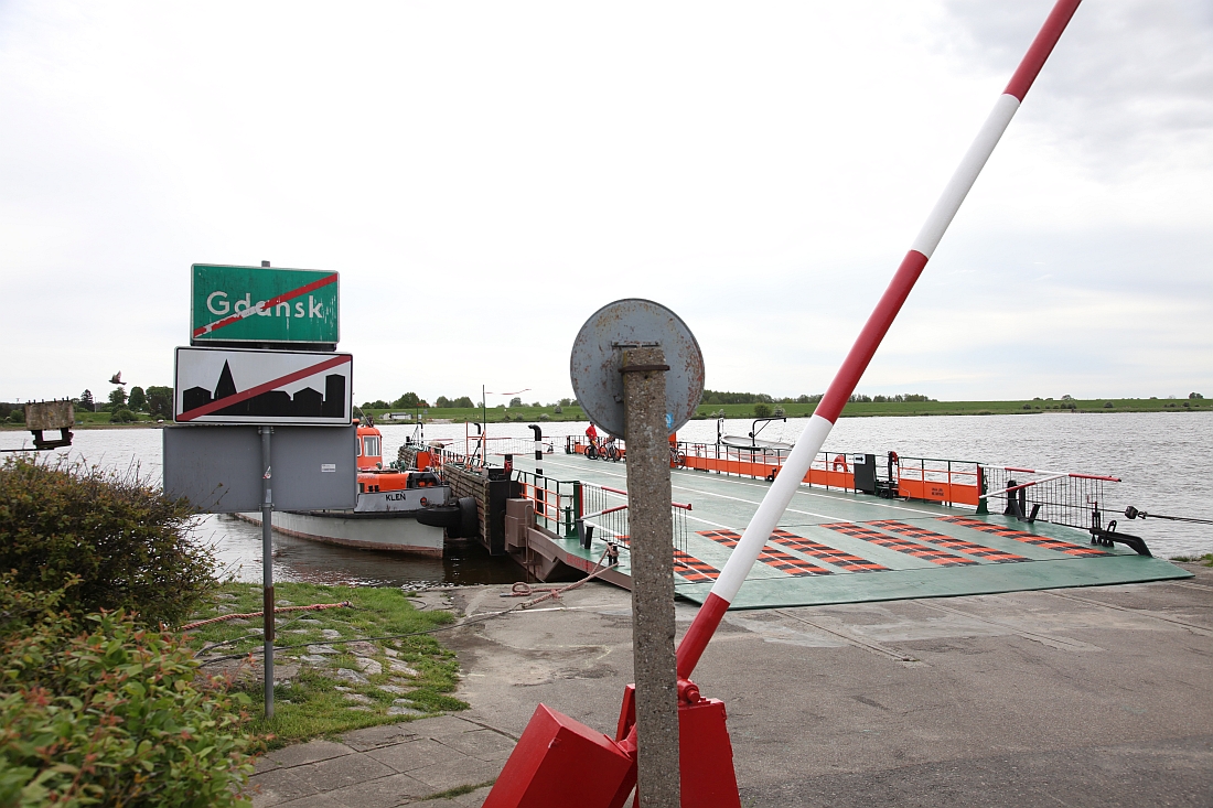 Einige Hundert Meter stoßen wir auf den Anlass unseres Ausfluges hierhin: Die einst mittels Trajekt bis nach Danzig hinein fahrende