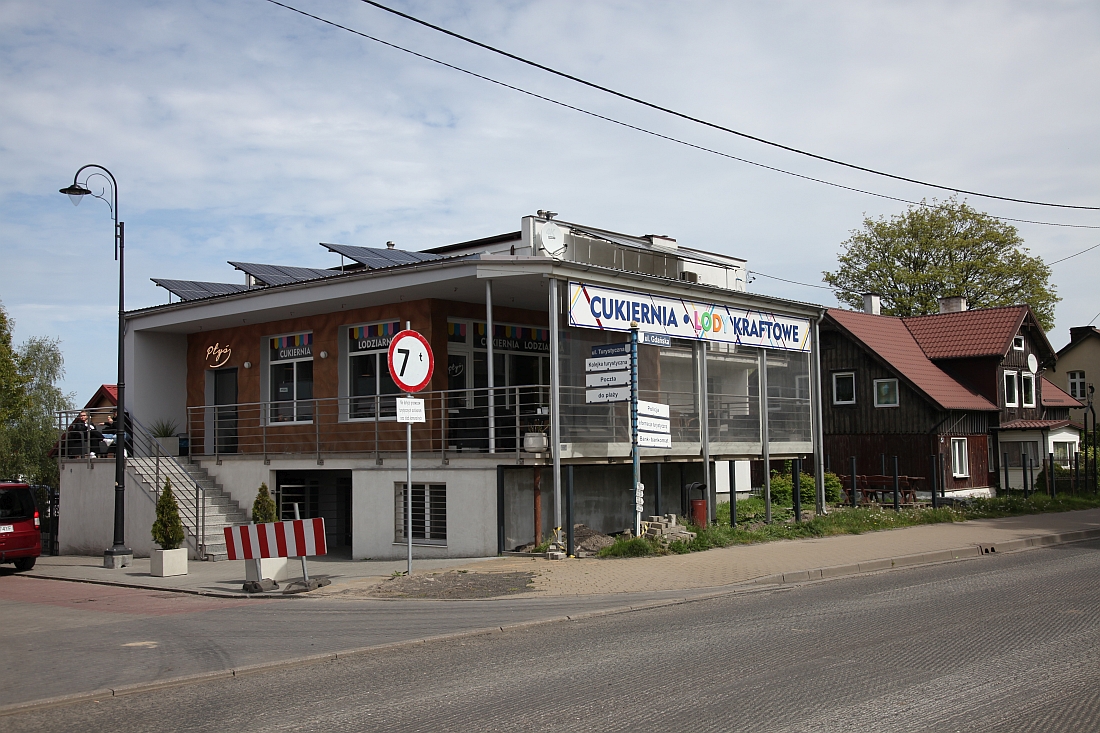 ... dieser Konditorei im Baustil "Spätes Bromberg" mit Kuchen und Getränken von der anstrengenden Reise erholen. Danach wiegen wir mehr als 7 Tonnen und dürfen nicht mehr über die Straße gehen.