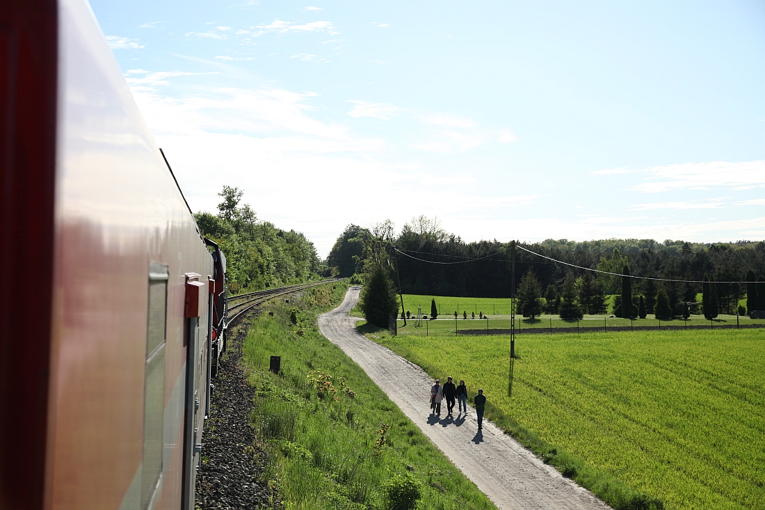Schmalspurbahn Rógow neulich. Aber egal - sie passt wunderbar in meine Rückreise. Als einige der wenigen Bahnen