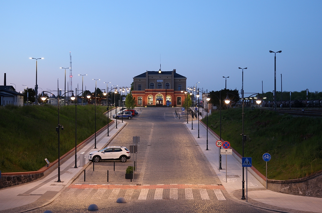 In Środa steige ich schon am PKP-Bahnhof aus. Das erspart mir ein paar Meter Umsteigeweg und ermöglicht noch ein ich-bin-dagewesen-Bild bei der Ausfahrt.