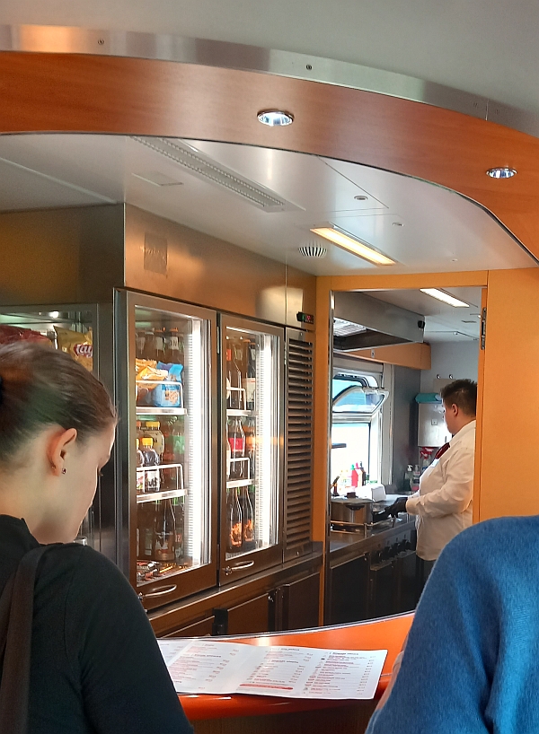 ...zum Frühstück in den Speisewagen wechsele.