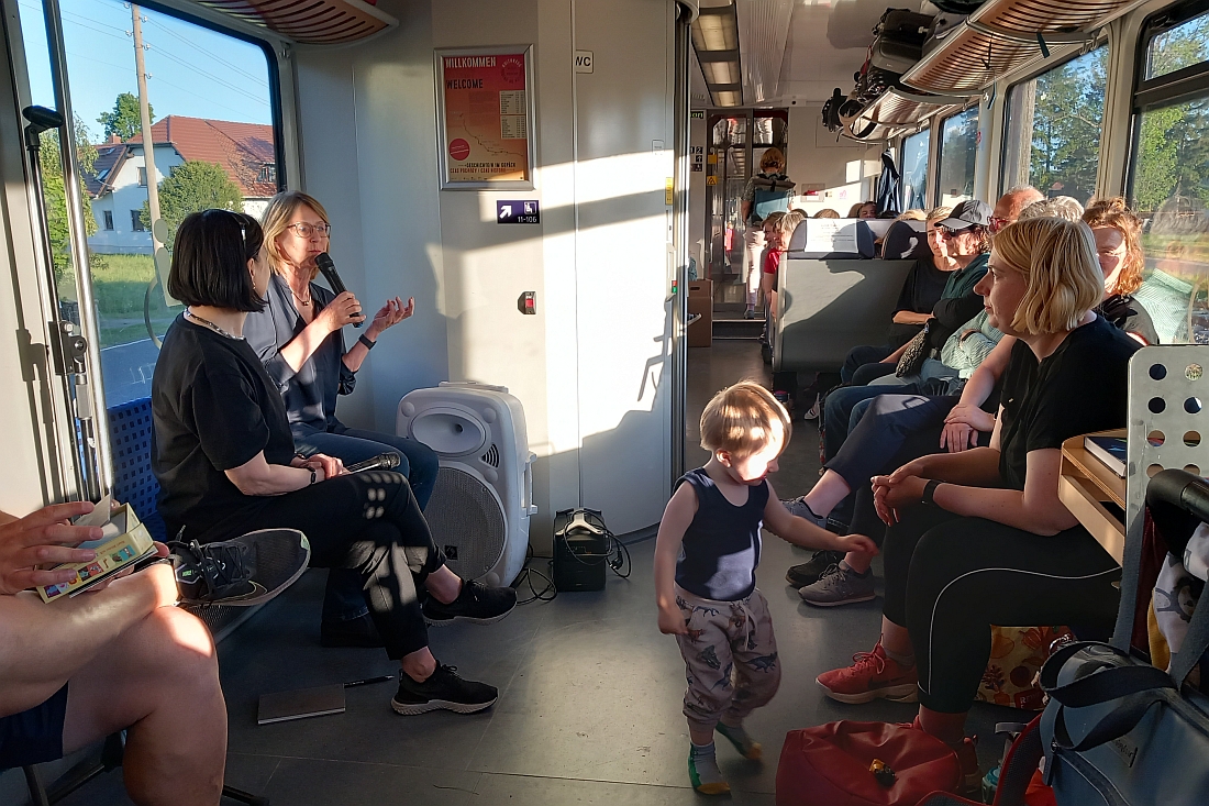 werde ich von der Kuratorin im Triebwagen gleich gefragt, ob ich in das "Diskussionsabteil" mitkommen möge,