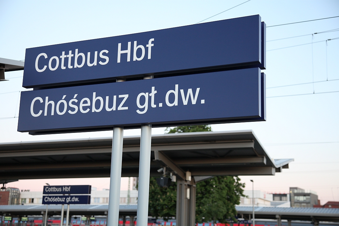 Viel zu schnell vergeht die Fahrt im Kulturzug, die entlang der letzten Doppelmasten an (befahrenen) deutschen Bahnstrecken verläuft. So werde ich im deutsch-sorbisch beschilderten Bahnhof Cottbus das letzte Mal mit durchgestrichenen "L" oder Strichen über dem "O" an eine Woche durch das liebenswerte Land der begrenzten Unmöglichkeiten erinnert.